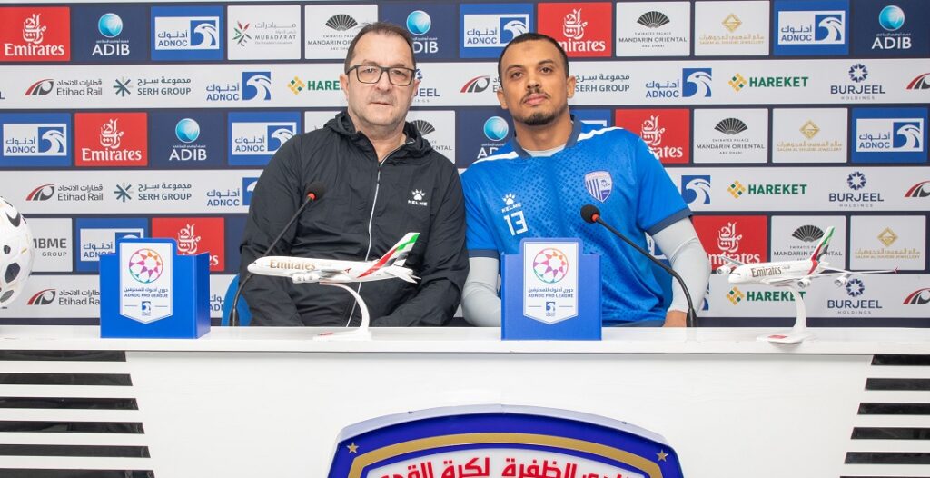 جاء ذلك خلال المؤتمر الصحفي التقديمي لمباراة خورفكان، والذي عقده المدرب اليوم الأربعاء في قاعة المؤتمرات الصحفية باستاد حمدان بن زايد آل نهيان بمدينة زايد، بحضور لاعب الفريق محسن الربجا.